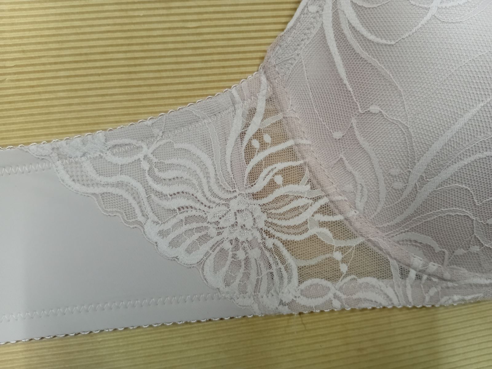 Unutrašnjost korpe izrađena je od mekog materijala za nežan osećaj na koži, a spoljašnjost je prekrivena prelepom čipkom koja dodaje notu elegancije. Između korpi nalazi se diskretan ukras sa cirkonima, koji ovom modelu daje poseban šarm.