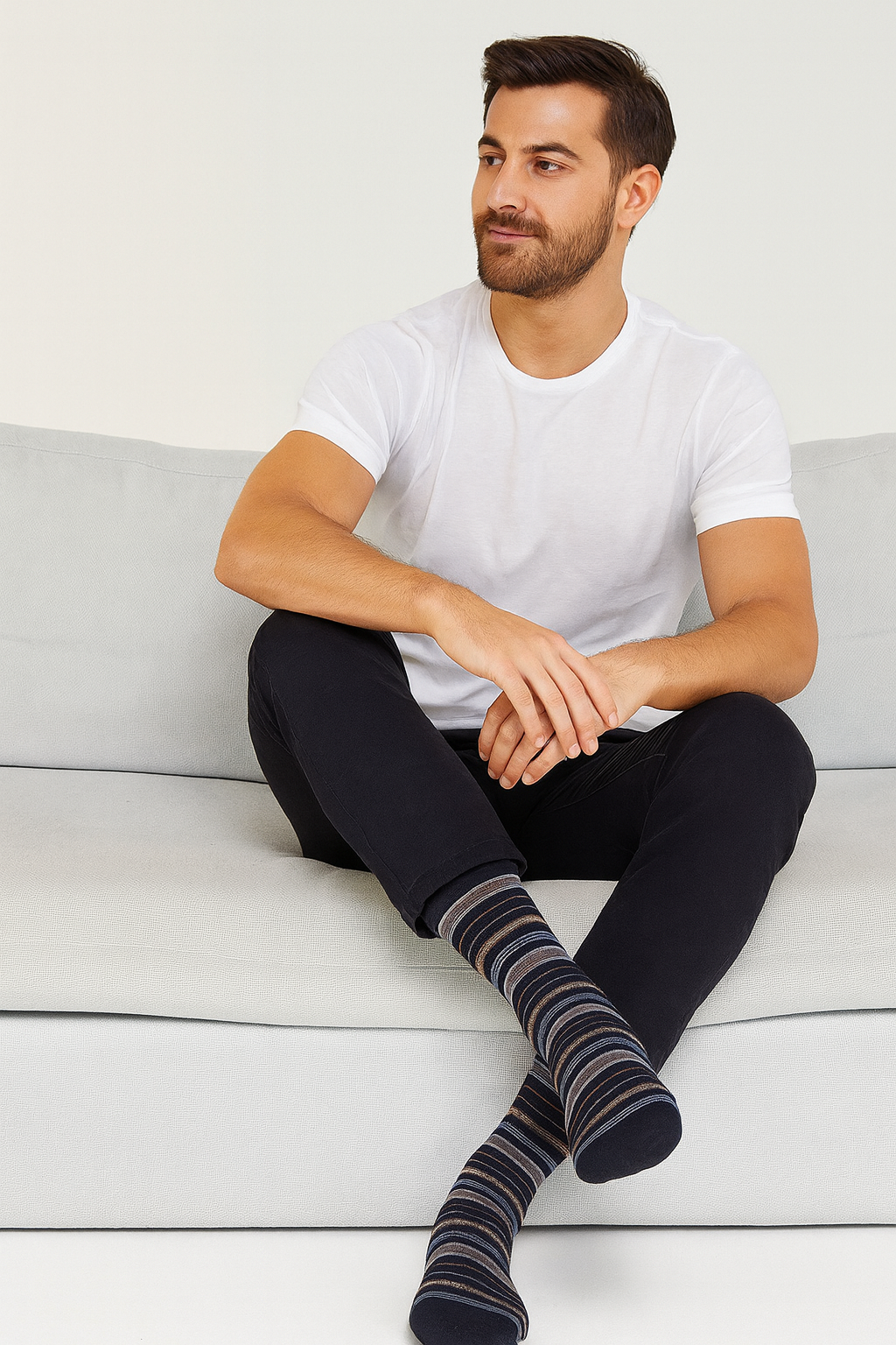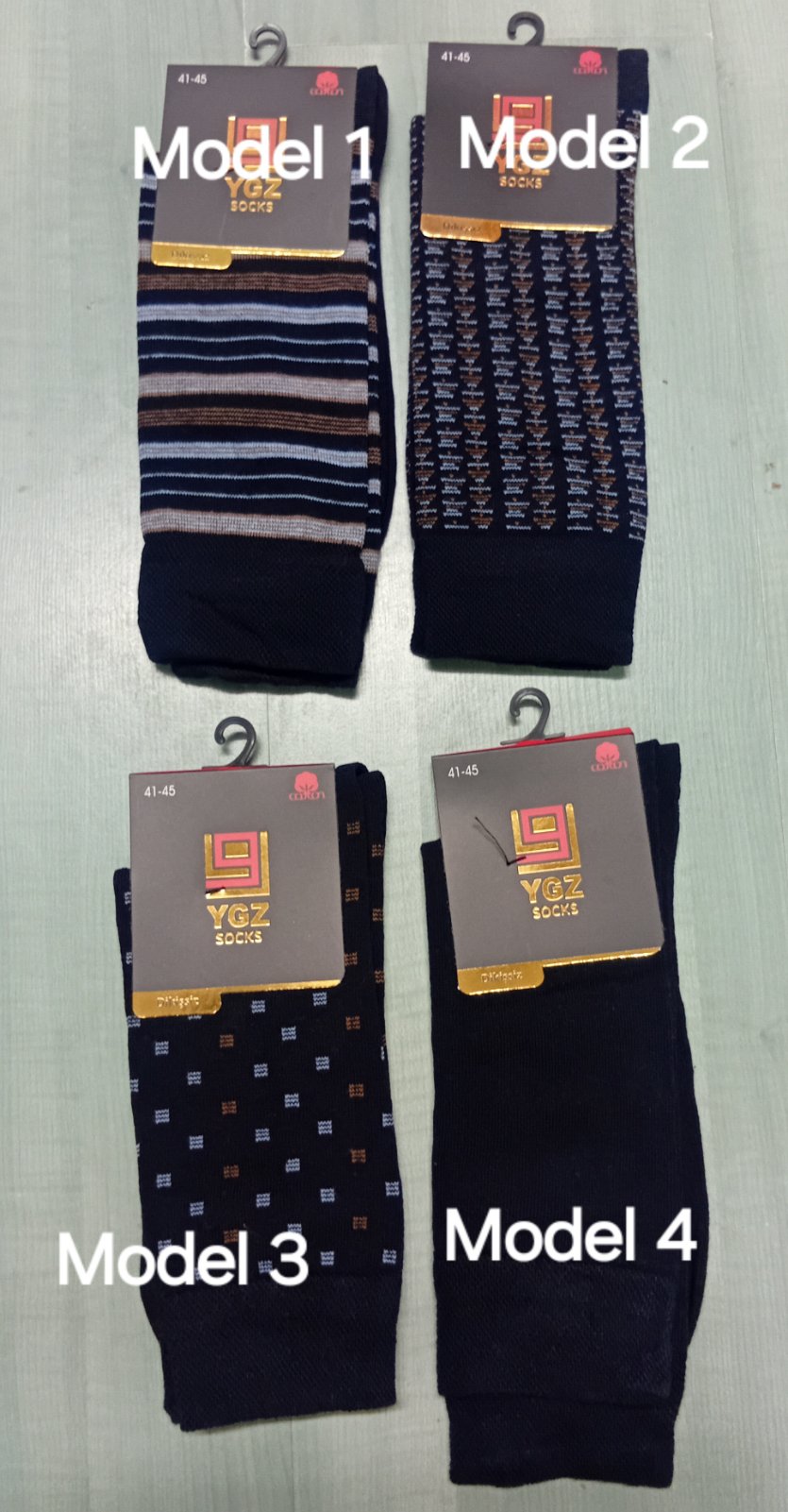 Muške čarape izrađene od kvalitetnog pamučnog prediva sa dodatkom poliamida i elastana pružaju udobnost, trajnost i savršeno prijanjanje. Podloga u teget boji sa različitim šarama donosi moderan i elegantan izgled, dok je Model 4 u jednobojnoj teget varijanti – savršen izbor za formalne kombinacije i odela.
