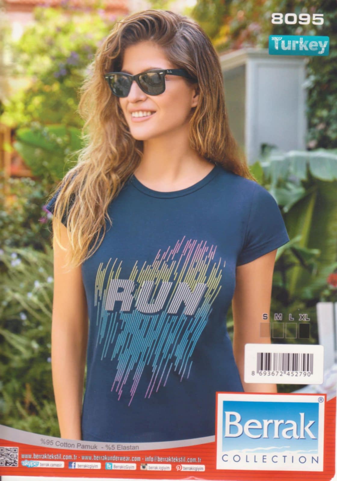 Majica kratki rukav Berrak 8095. Veličina L, XL. Boja sa slike, plava,pamuk. Ukrašena sa štampom. Zadnji komad