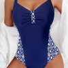 Jednodelni kupaći kostim model 261365 pažljivo je dizajniran kako bi ženama u većim veličinama pružio savršenu ravnotežu između udobnosti, stabilnosti i estetski privlačnog izgleda. Plava boja, prikazana na slici, odiše svežinom i elegancijom, istovremeno naglašavajući figuru i dajući sofisticiran letnji utisak. Ovaj model idealan je za žene koje žele praktičan kupaći kostim koji lepo oblikuje siluetu.