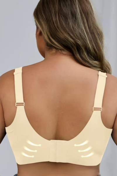 Bretele se lako podešavaju, omogućavajući personalizovano pristajanje, dok kopčanje na leđima pruža stabilnost i pouzdanost tokom celog dana. Duboki bočni rez pažljivo “hvata” ispod ruke, oblikujući i nežno privlačeći bočne linije grudi ka centru, što stvara lepšu siluetu ispod odeće. Između korpi nalazi se diskretan detalj od tila — mali ukras koji dodaje notu finoće i ženske estetike.